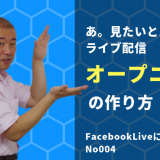 あ。見たいと思われるライブ配信オープニングの作り方(FacebookLiveについてNo004) 【2019年度版】FacebookライブとOBSをつなぐ方法(FacebookLiveについてNo003) 成功するライブ放送(TV)のやり方は顔出し+〇〇が大切(FacebookLiveについてNo002) 結果にこだわるFacebookLiveをする方法(FacebookLiveについてNo001)